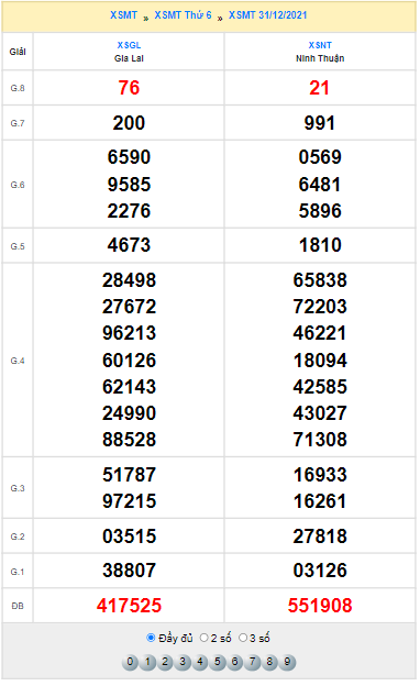 Chốt số lô dự đoán xổ số Ninh Thuận 31/12/2021