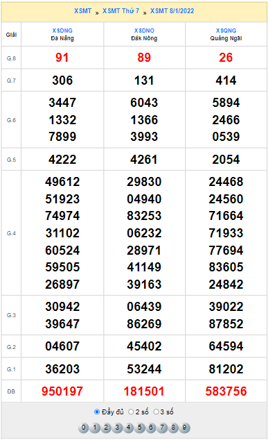 BÍ KÍP giúp KETQUAXS soi cầu XSMT 8/1/2022 và các ngày khác đều cho kết quả dự đoán chính xác nhất, TỈ LỆ trúng giải cao nhất là dựa trên kết quả XSMT ngày hôm trước và phương pháp xác suất thống kê chuyên sâu, các con số lâu ra nhất bạn chọn sẽ cho kết quả trúng thưởng đáng ngạt nhiên. Bạn có thể xem kết quả dự đoán XSMT ngày 8/1/2022 của KETQUAXS hoặc tham khảo kết quả thống kê giải đặt biệt XSMT và 10 cặp số xuất hiện nhiều nhất, xuất hiện ít nhất bên dưới để tự dự đoán kết quả XSMT hôm nay cho riêng mình.