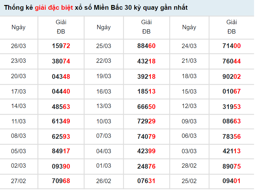 Dưới đây là những thống kê XSMB 28/3 gồm: Thống kê tần tần suất loto, thống kê lô gan, đặc biệt, lô kép, lô xiên chi tiết nhất trong 30 ngày qua để nhận biết quy luật về của các bộ số nhằm đưa ra dự đoán XSMB chính xác nhất và lựa chọn được cặp số đẹp trong ngày hôm nay.